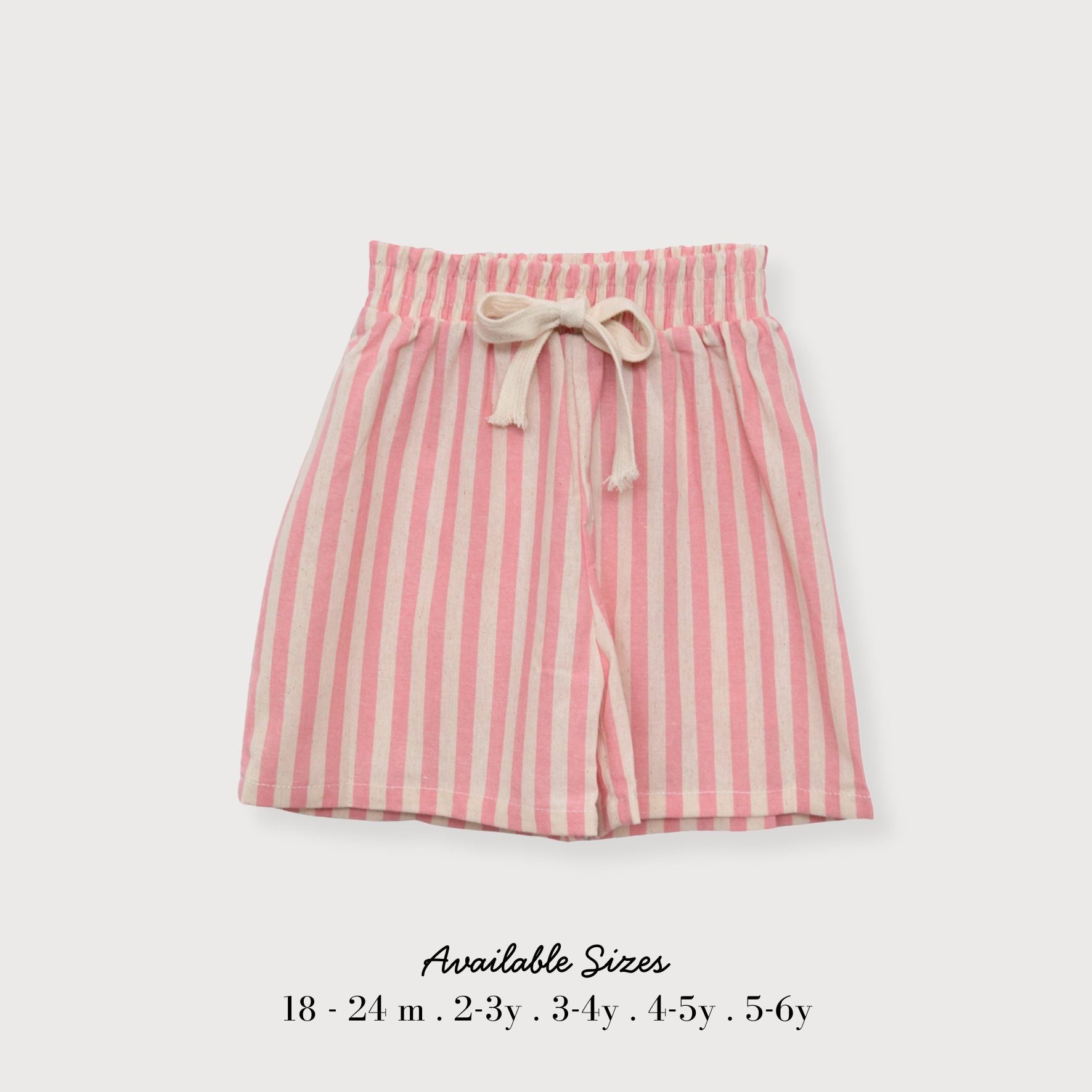 Bright, breezy and made for twirling through summer. These lightweight cotton shorts feature a playful pink and cream stripe with a comfy elasticated waist and functional drawstring — perfect for busy days on the move.