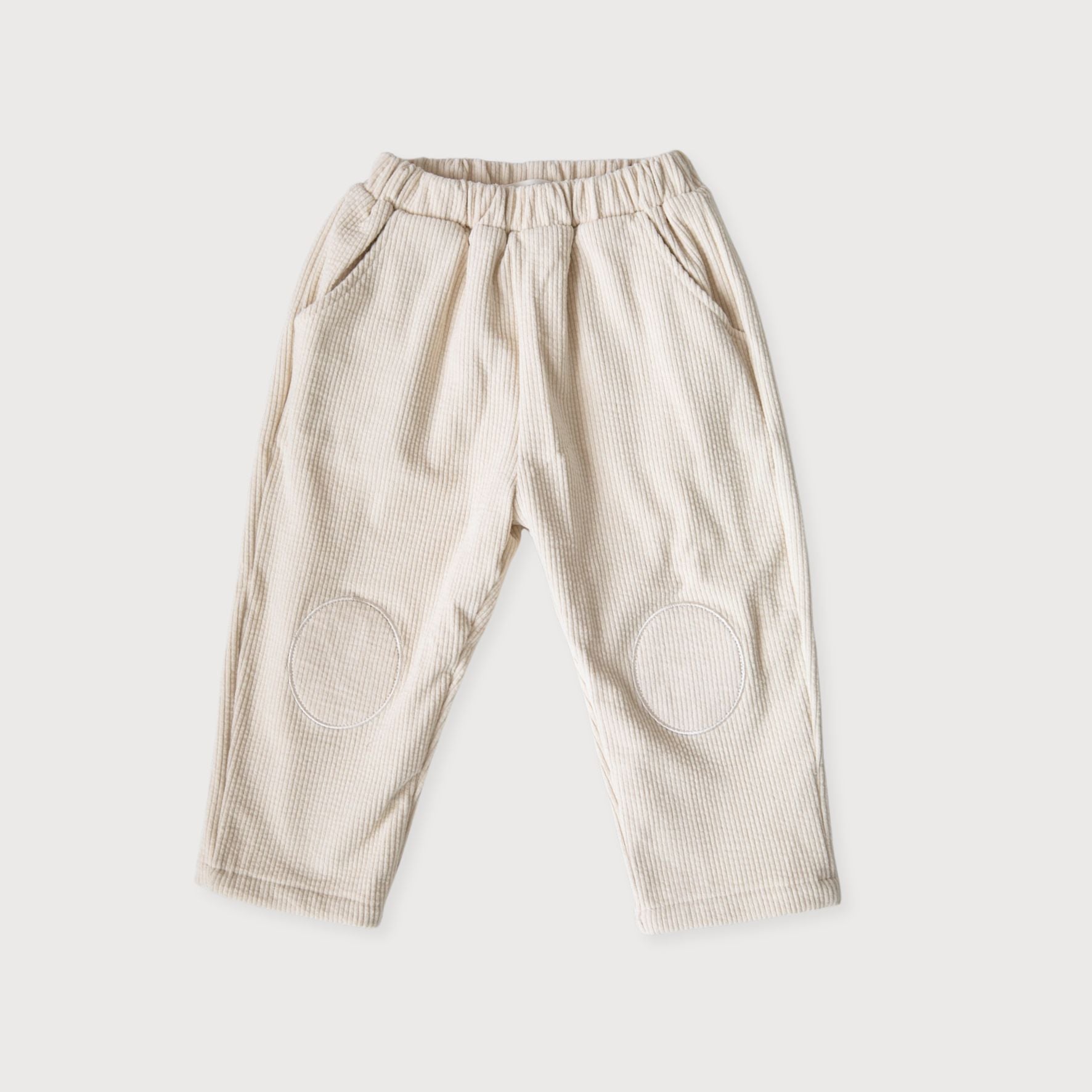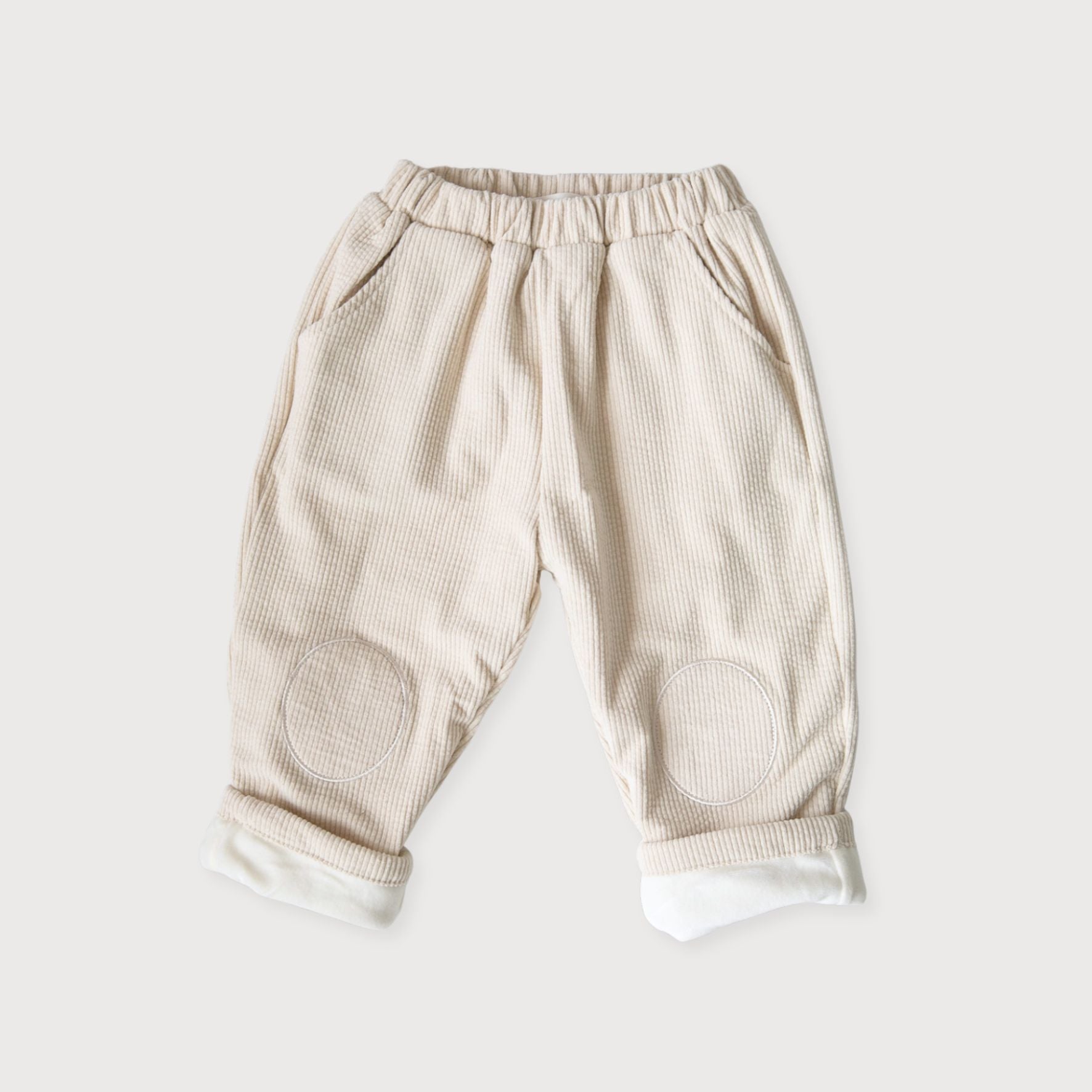 Durable and cosy for everyday wear. These cream cord trousers are made from soft, textured fabric with reinforced knee patches for added practicality. The inside is brushed for extra softness and warmth, keeping little ones snug through autumn and winter.