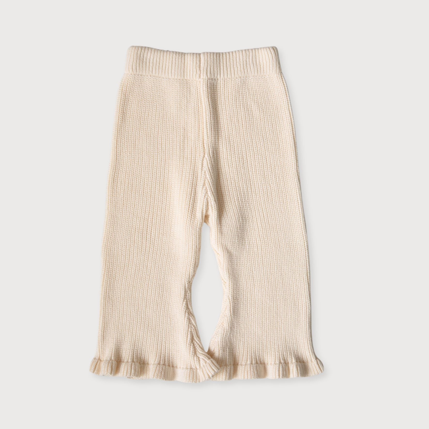Cream Knit Trousers with Frill Hem