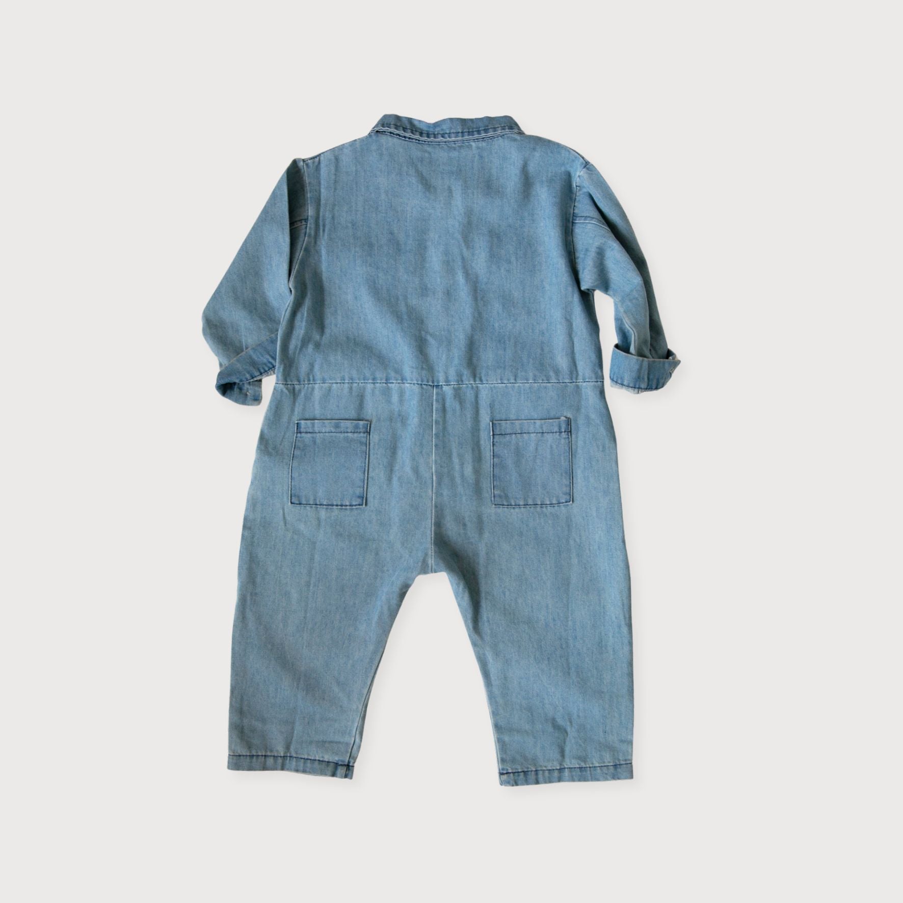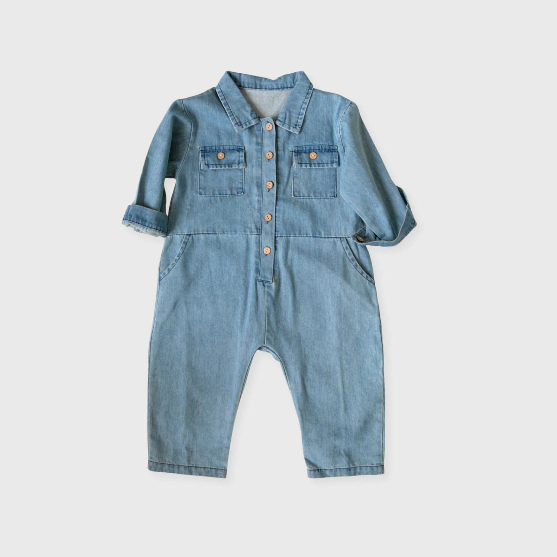 A versatile all-in-one for the season. This denim boiler suit is designed with wooden buttons, chest pockets, and side pockets. Comfortable and easy to move in, it’s perfect for playtime, running around, and just being kids.