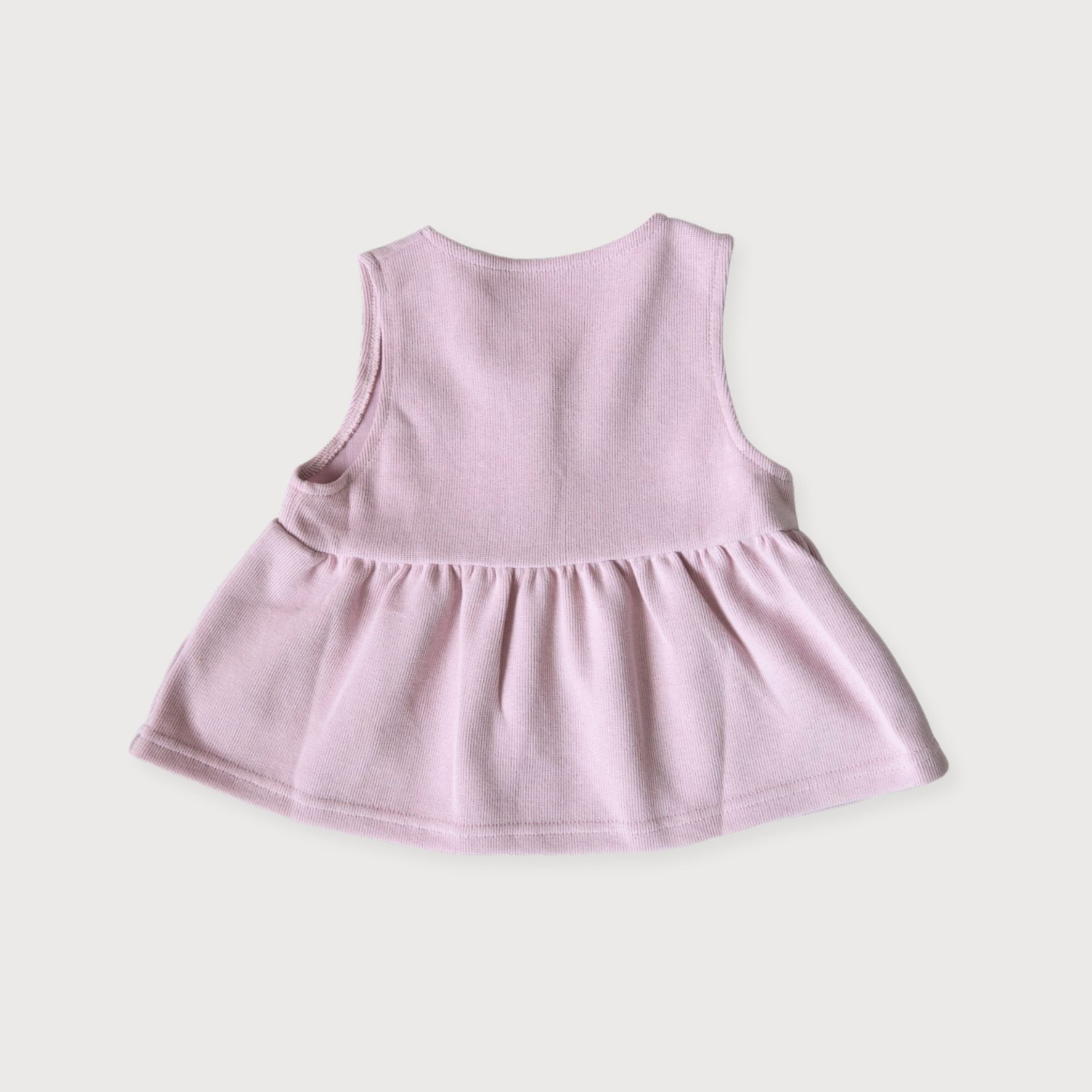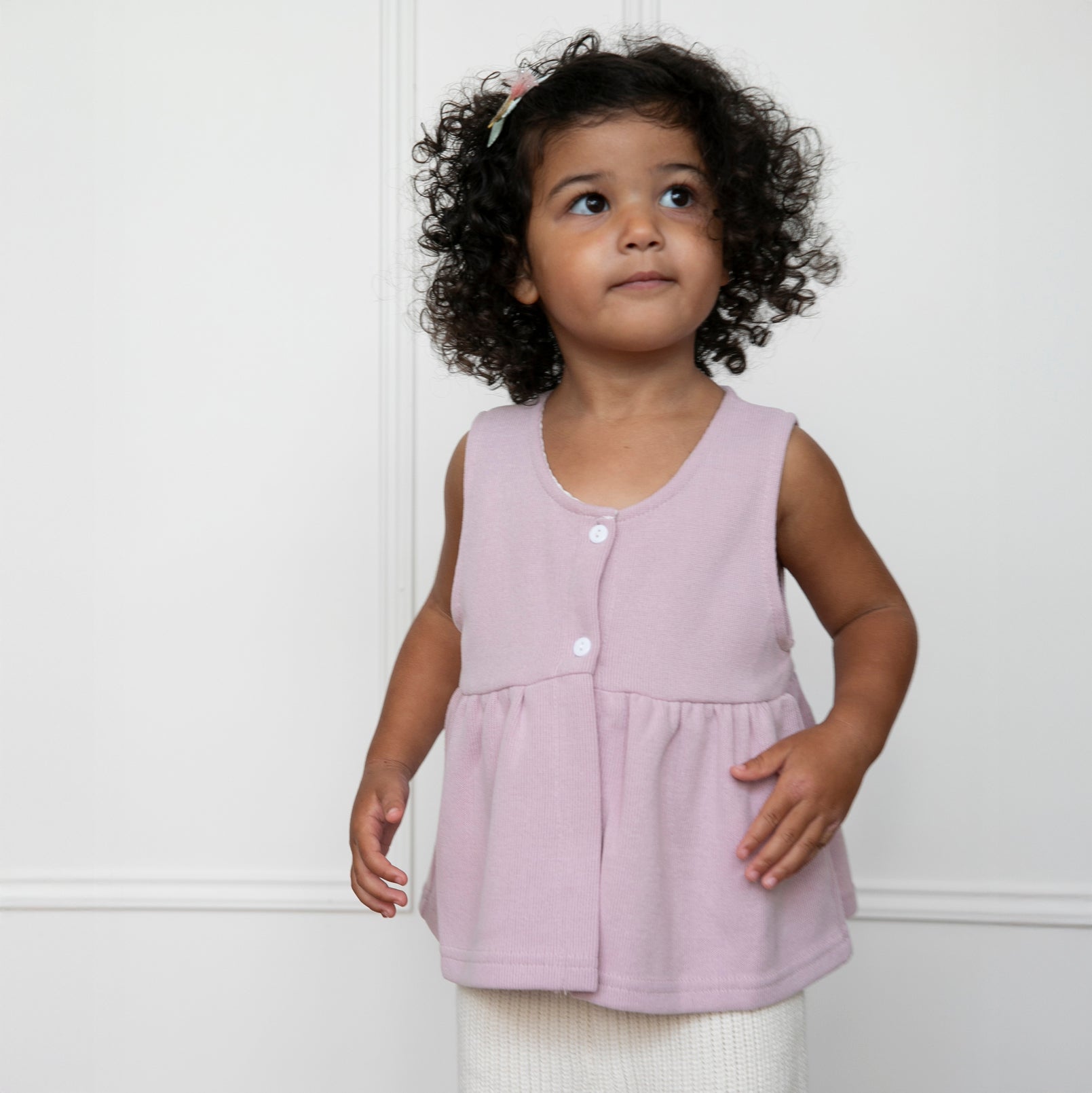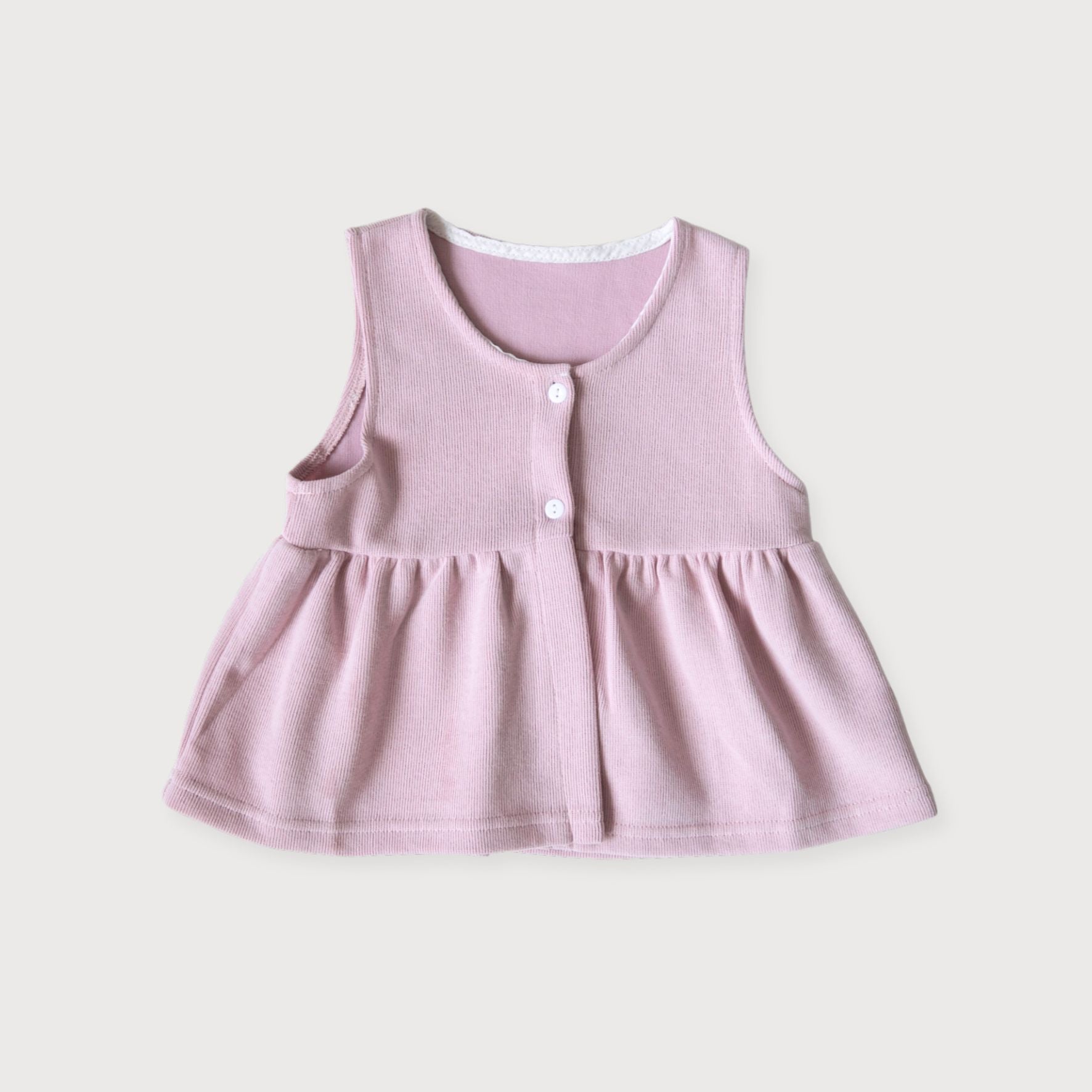 A sweet layering piece for the cooler months. This dusky pink sleeveless top is made from soft cotton rib with a gentle flare for comfort and movement. Finished with front buttons for easy dressing, it’s perfect for layering over long-sleeve tops or pairing with cardigans and knitwear through autumn and winter.