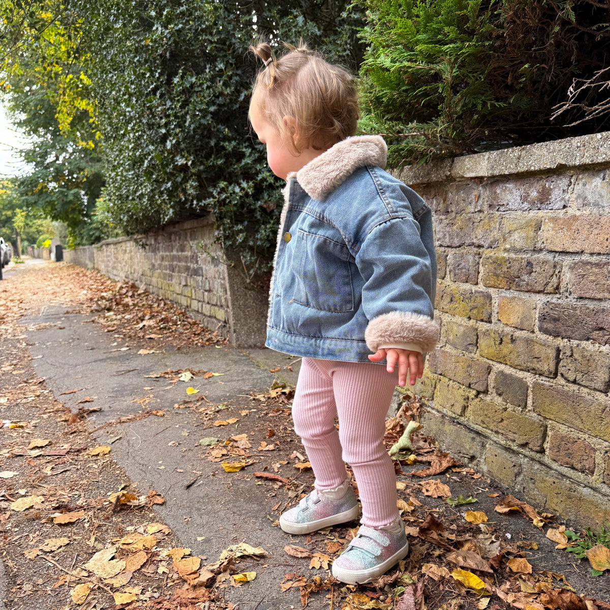 Pink ribbed frill detail leggings are a sweet and playful piece of kids’ clothing.