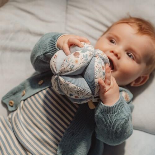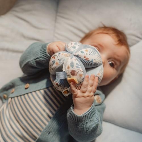 Reach and go for it! This gripping ball with its interesting shape makes for a great challenge for your little one. There are many spots to grab and explore with different textures and patterns. It’s easy to pick up for little hands and when it moves the joyful sound of the bell rattle will cheer your baby on. On the sweet decor of Forest Friends, the easy-to-grab knots and various labels will stimulate the senses, develop grip and keep your baby engaged in the playpen.