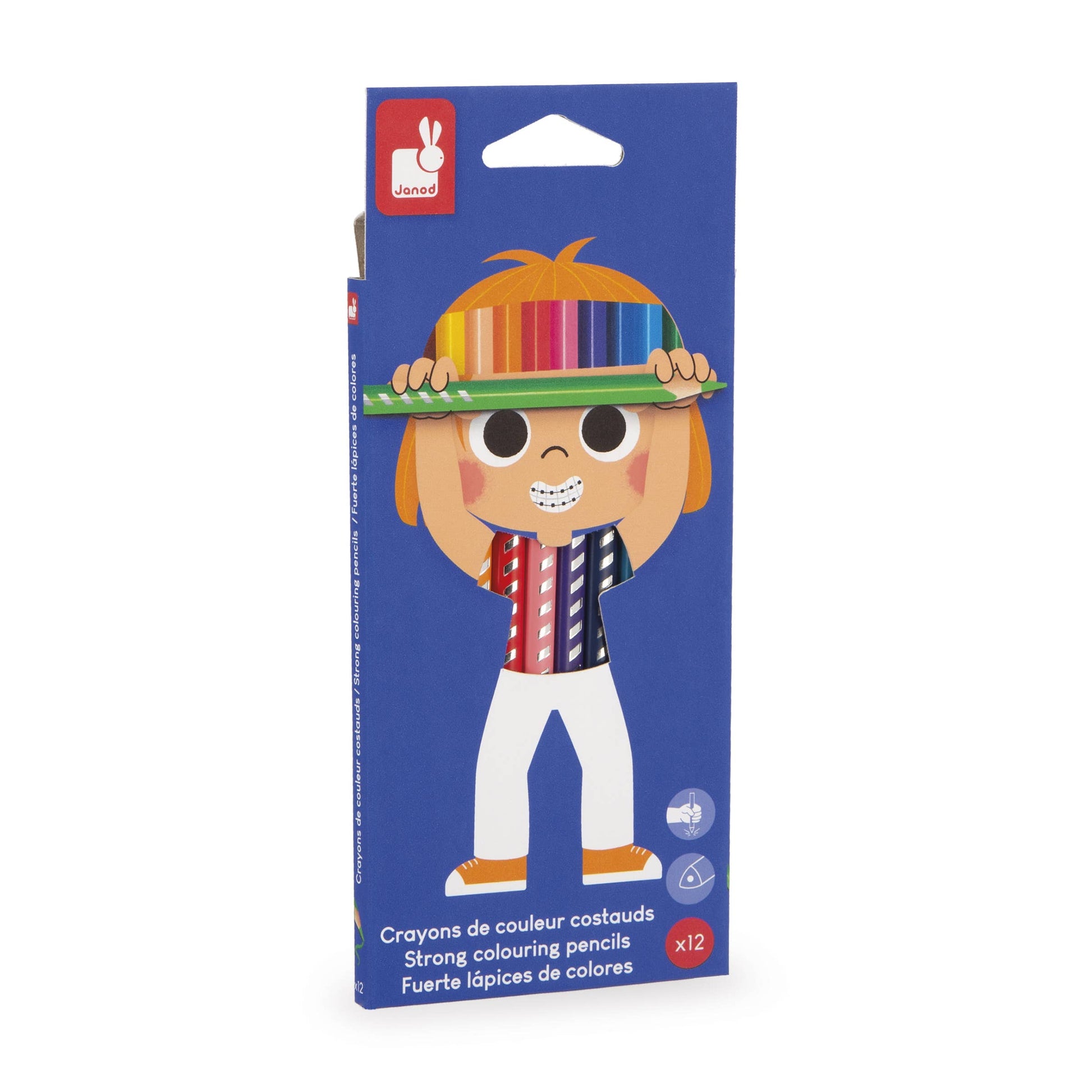 An explosion of colour at your child’s fingertips! With this set of 12 coloured pencils, every drawing will become a work of art. Their relatively chunky yet durable nibs ensure a long service life, whilst the triangular shape allows for an easy and comfortable grip. The bright colour palette is bound to stimulates both your child's creativity and imagination. These easy-to-sharpen pencils are perfect for hours of non-stop colouring. Product for children aged 3 and up.