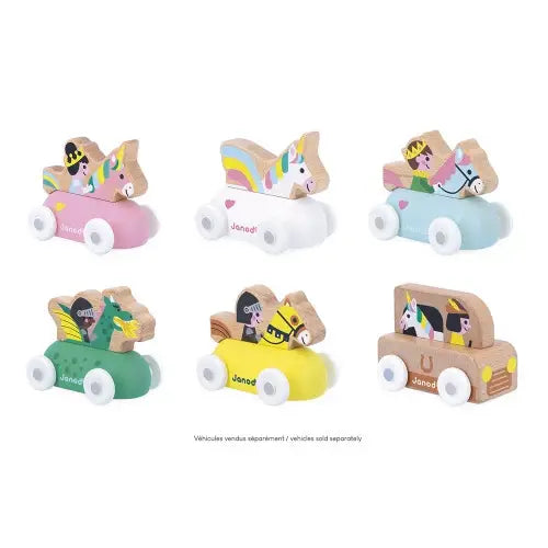 The prince is riding his horse throughout the kingdom. Little ones can invent countless stories with this push-along vehicle. The vehicle shape has been designed to give toddlers a better grip. Toy made from FSC™ wood for children aged 12 months and up. Combine this push-along car with its mat and cool block set in the same Janod range to perfectly complete the universe.
