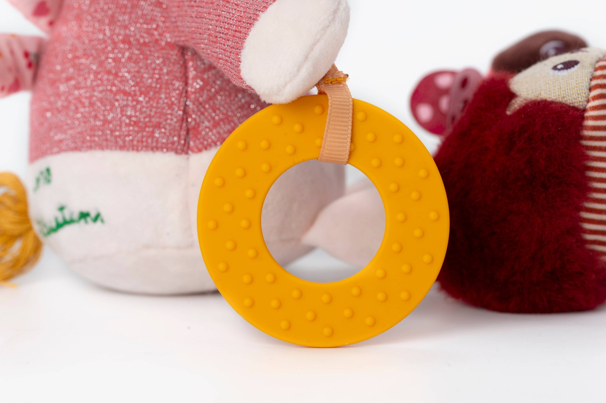 Lena the unicorn offers a multitude of activities to awaken the senses of little ones. Equipped with a soft teething ring, a mirror covered with a rainbow, and a multi-colored furry mane, this magical companion is full of surprises.
