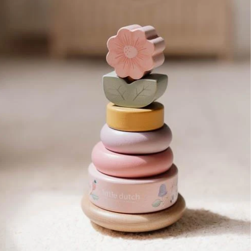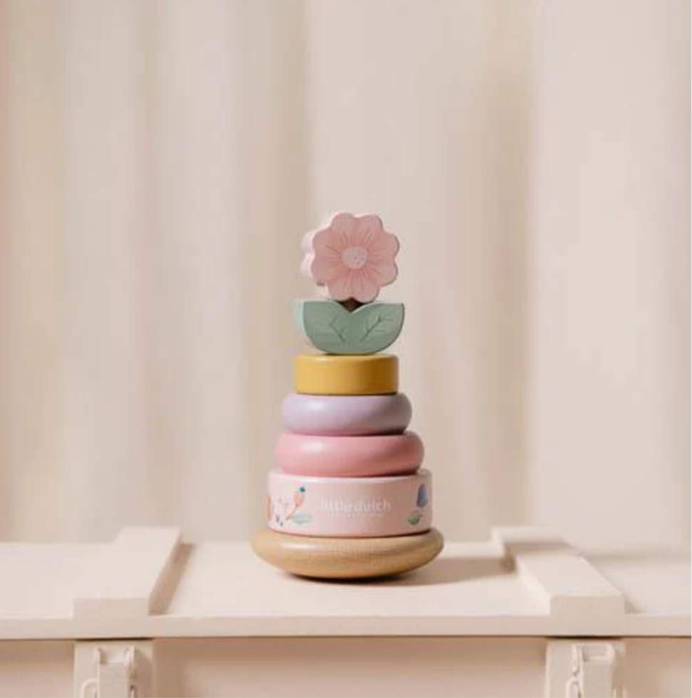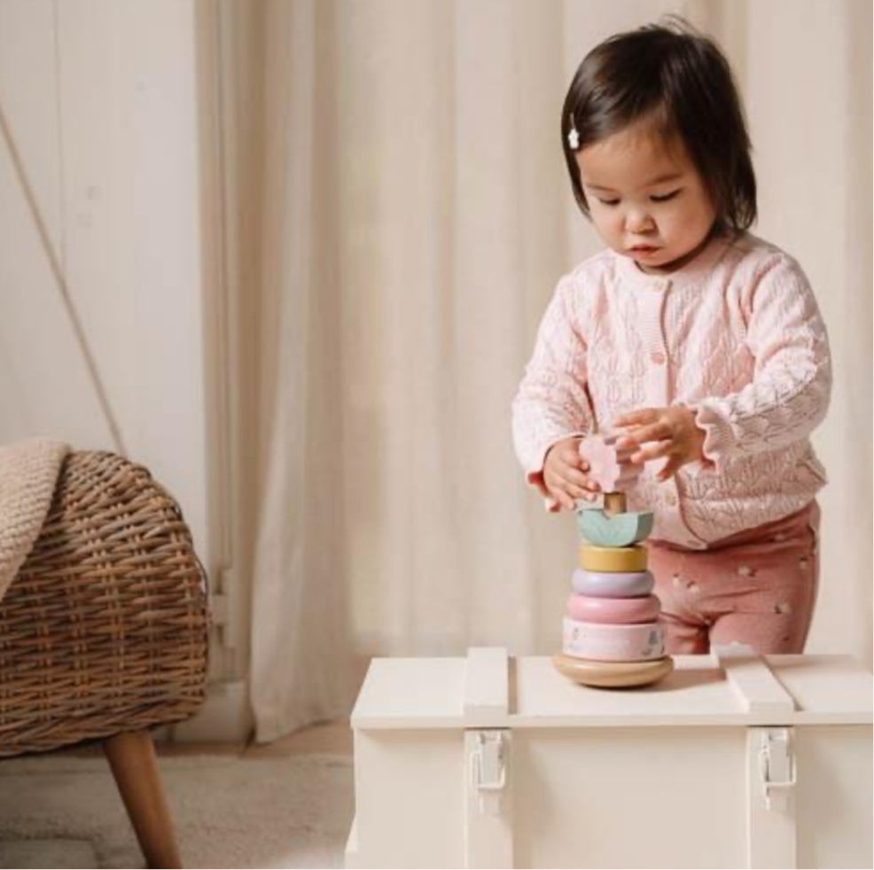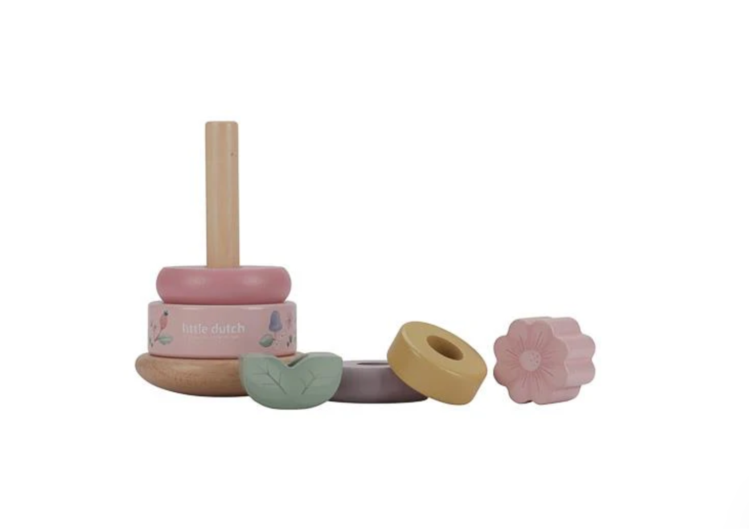 Take on the challenge of stacking the rings on the tumbling base! It is an entertaining game that requires your full attention. Stack the rings in the correct order, and place the flower on top of the tower. This beautiful wooden tumble stacker from the Fairy Garden collection is designed to develop children's hand-eye coordination in a playful way.