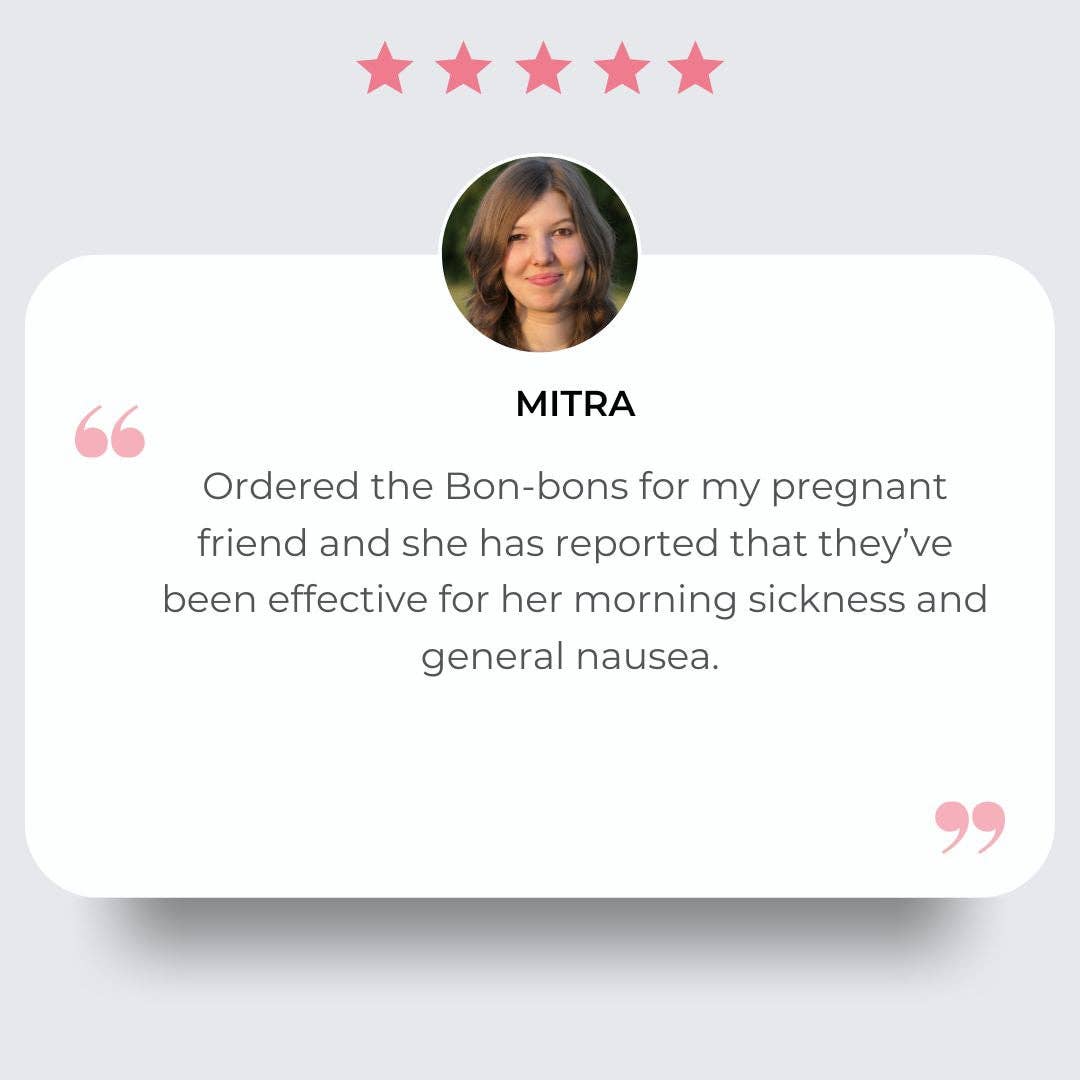 Our Vegan Bon-bons are designed to provide a refreshing relief from morning sickness and a boost of vitamin B6.