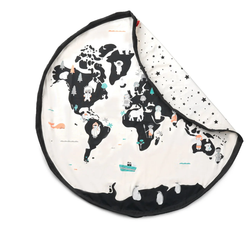 Can you find the grizzly bear in Canada? Did you see the surfer boy all the way down under in Australia? Count the penguins in the Arctic... Discover the world of Play and Go with this double printed worldmap storage bag with starry sky outside print! Be good to your toys with this funny, elegant pattern designed with top-notch materials.
