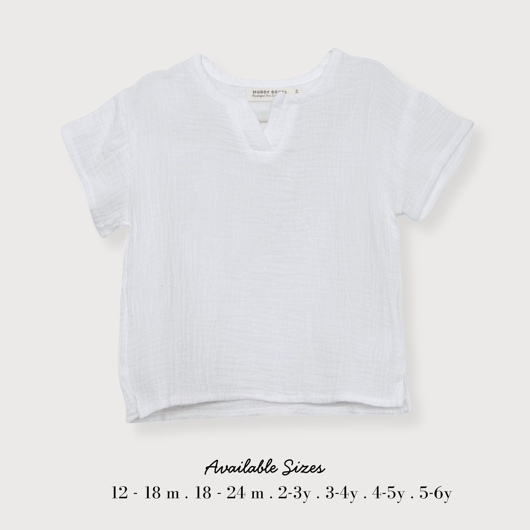 Soft, simple, and summer-ready. This breezy white top is made from lightweight double-gauze cotton (muslin), making it perfect for warm days and holiday dressing.
