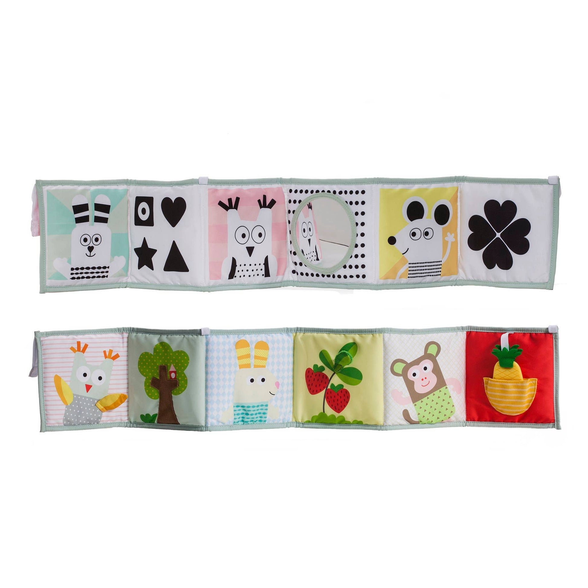 Designed to stand upright, this soft book encourages tummy-time play and can also be used in cots or prams for versatile entertainment.