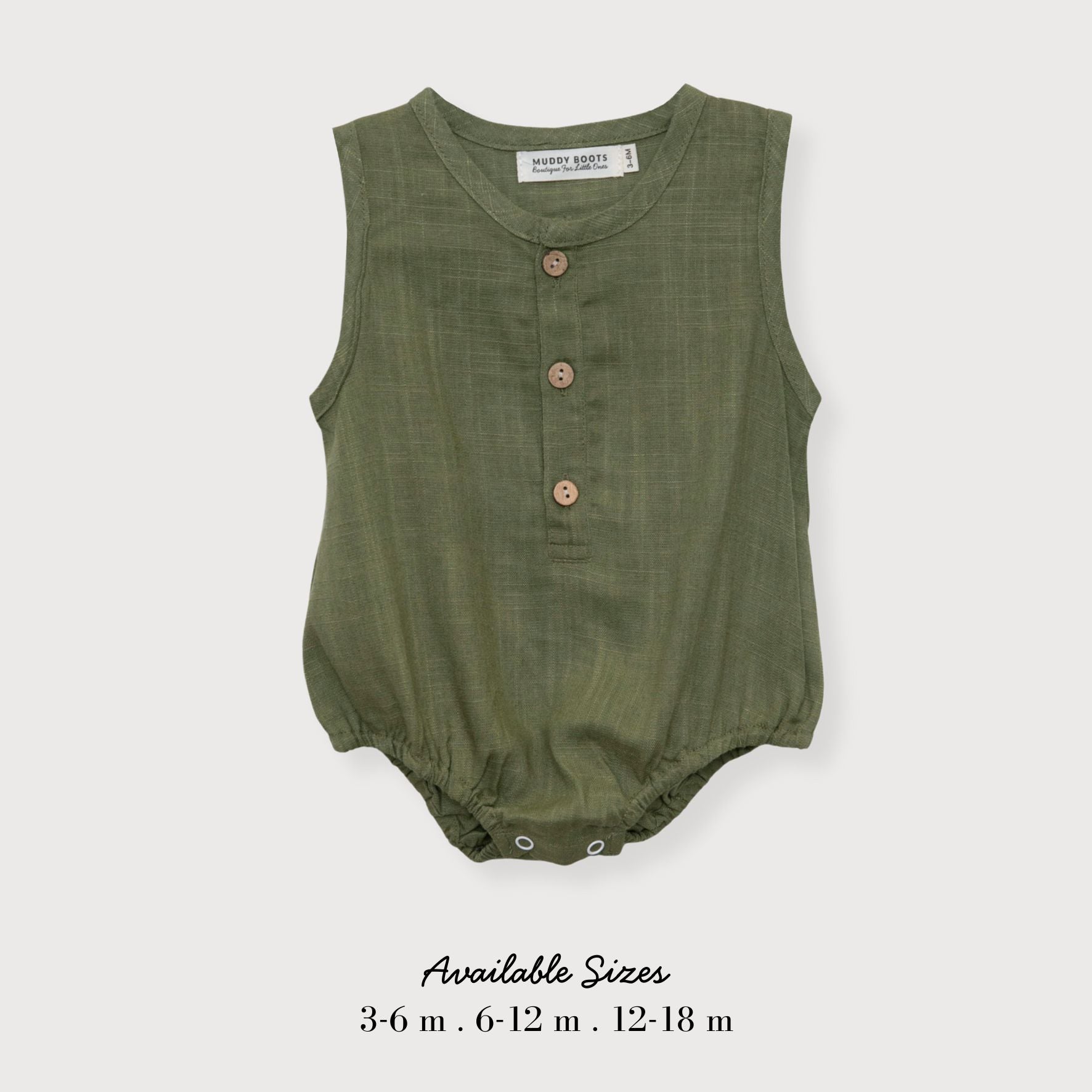 Cotton-Linen Button Romper – Olive